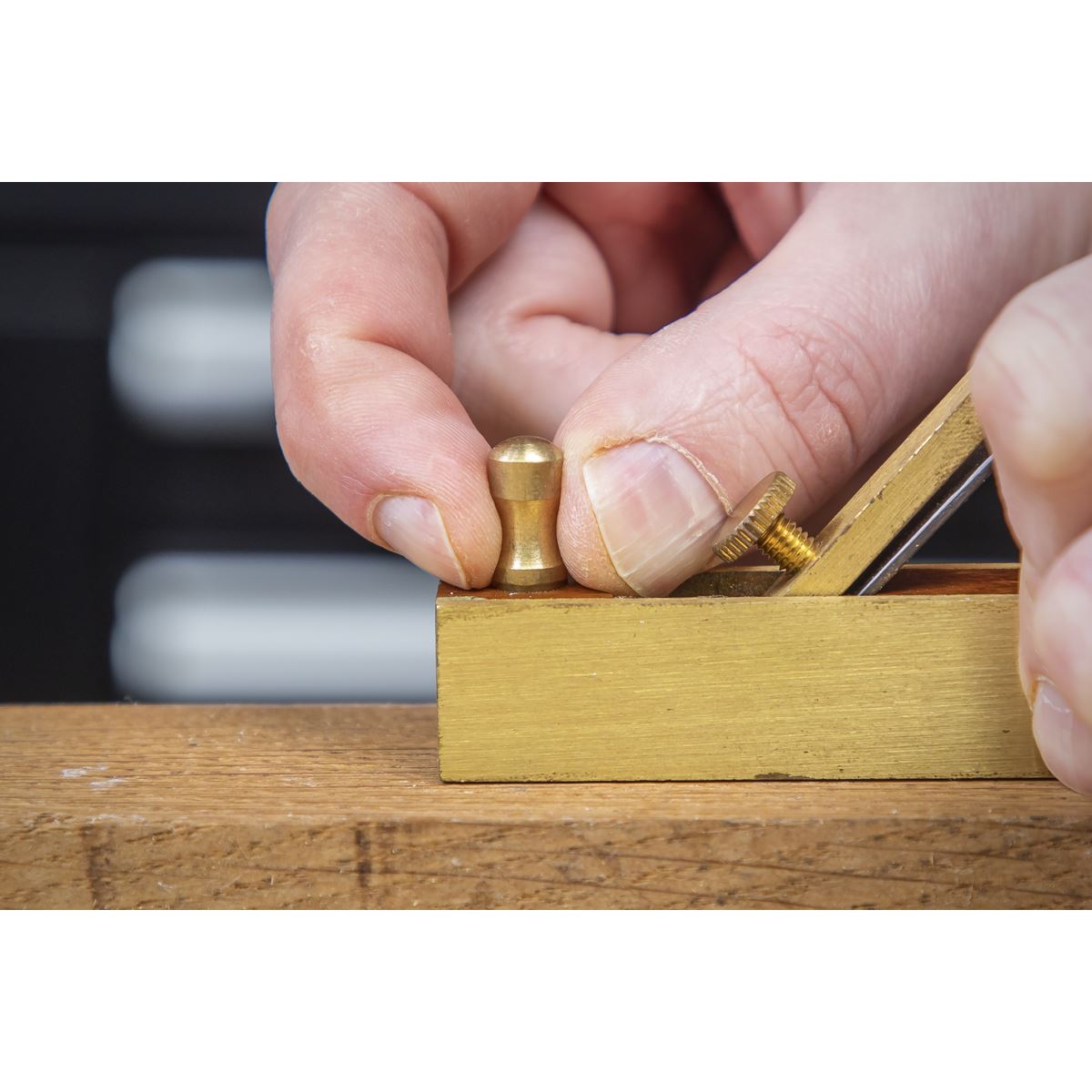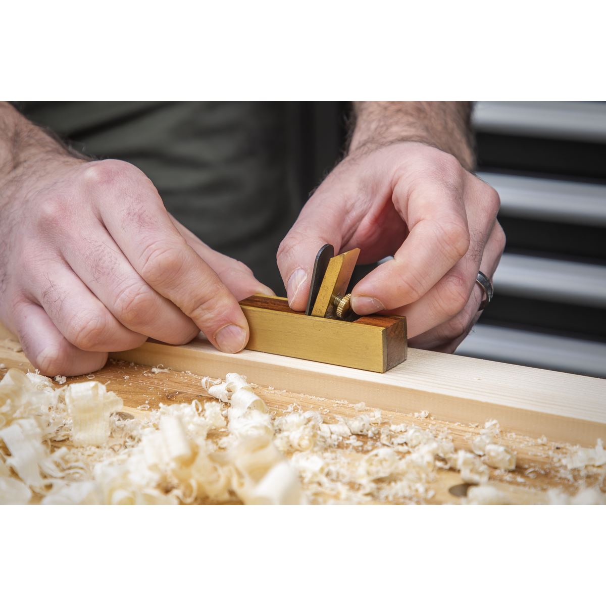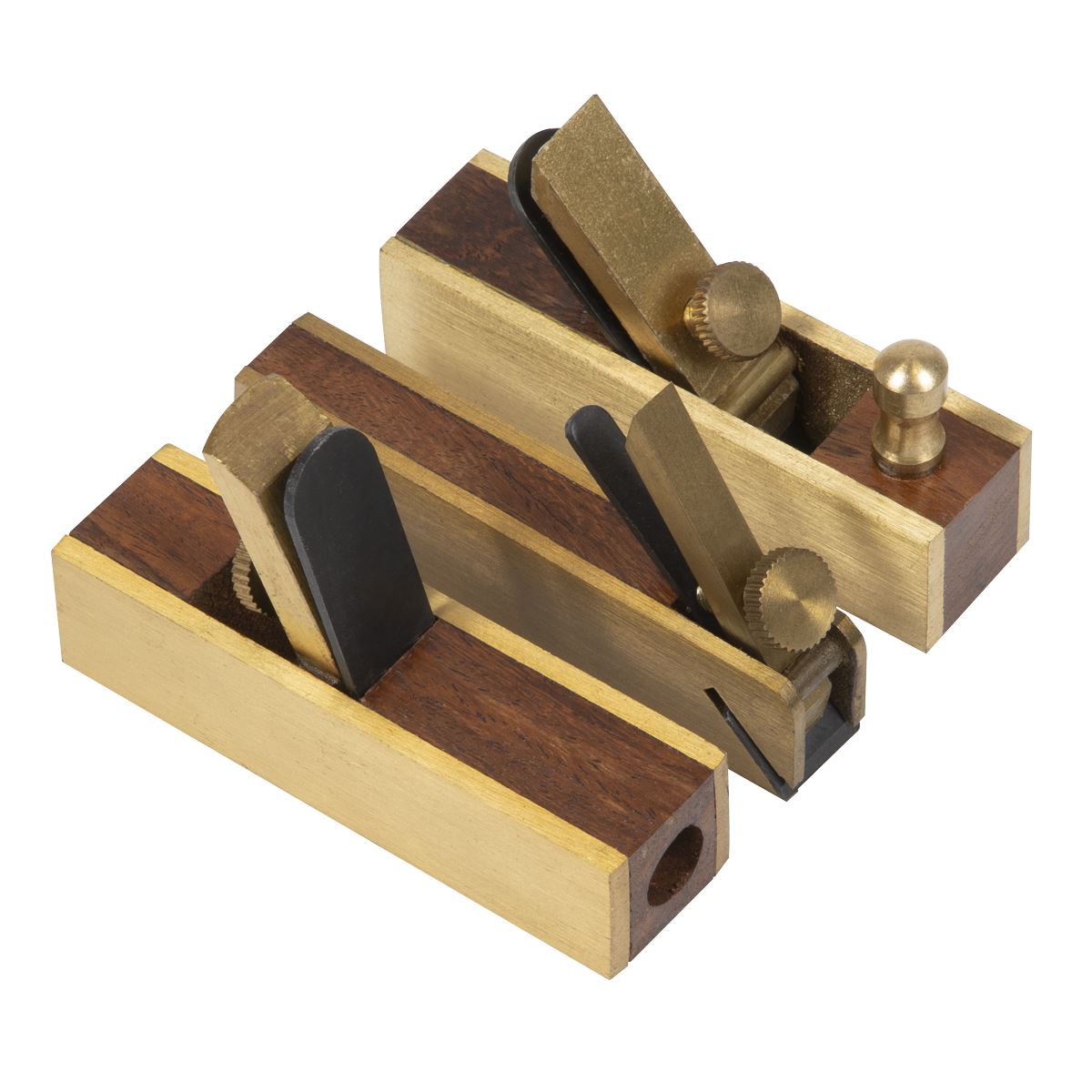 Mini Brass Plane Set Constructed from solid brass and rosewood. Includes a Bull Nose Plane, Block Plane and Scraper Plane. Ideal for small precise carpentry work and restricted access. Perfect for meticulous detailed work in many different applications, including model makers. Perfect for detailed trimming, wood planing and surface smoothing.