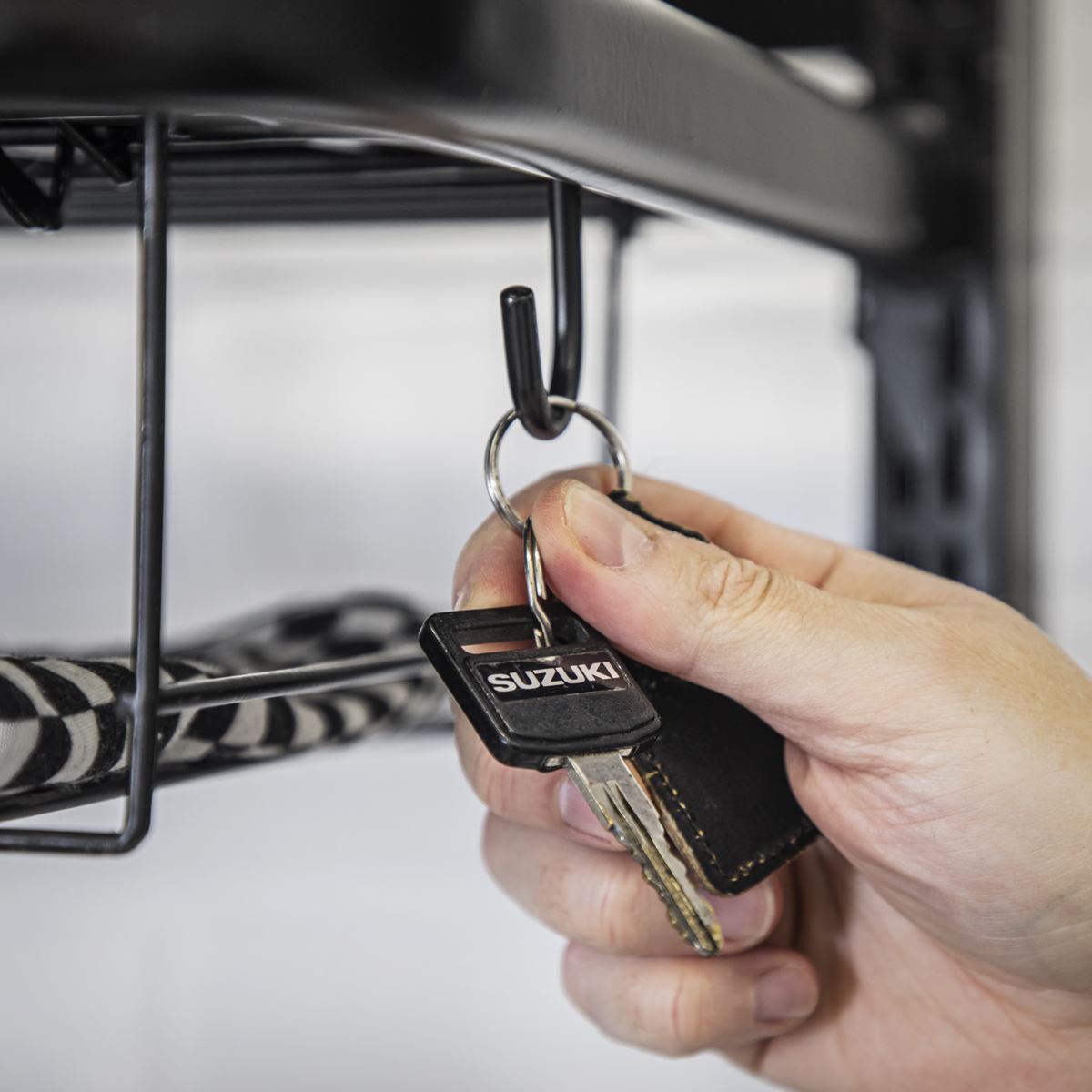 • Adjustable shelves allows for easy storage of up to four helmets.