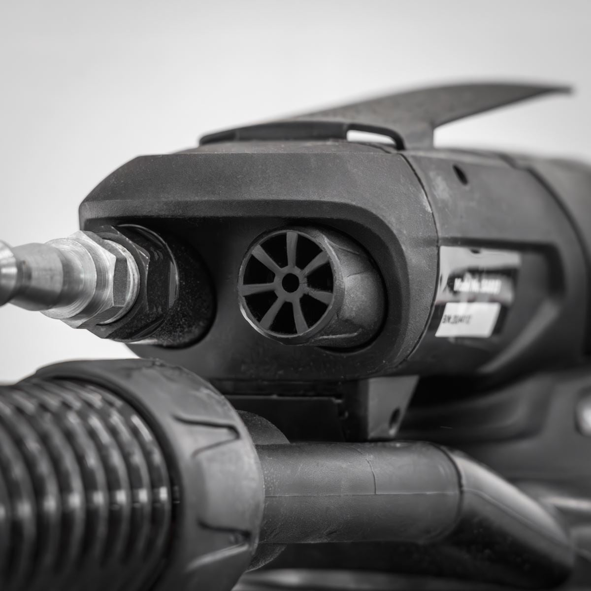 This air sander is well-suited for a wide range of applications including grinding, polishing, and the removal of rust and paint from car bodies, furniture, metalwork, and various components. User-friendly lightweight design and ergonomic structure for comfort and ease of handling. Polycarbonate outer housing with soft rubber handgrip reduces chill and vibration. Features adjustable air regulator for additional control. Exhaust muffler to reduce noise emission. Dust-free outlet for use with centralised dust extraction systems. Supplied with 150mm hook-and-loop dust-free pad. Features a self-generated vacuum with hose and bag.