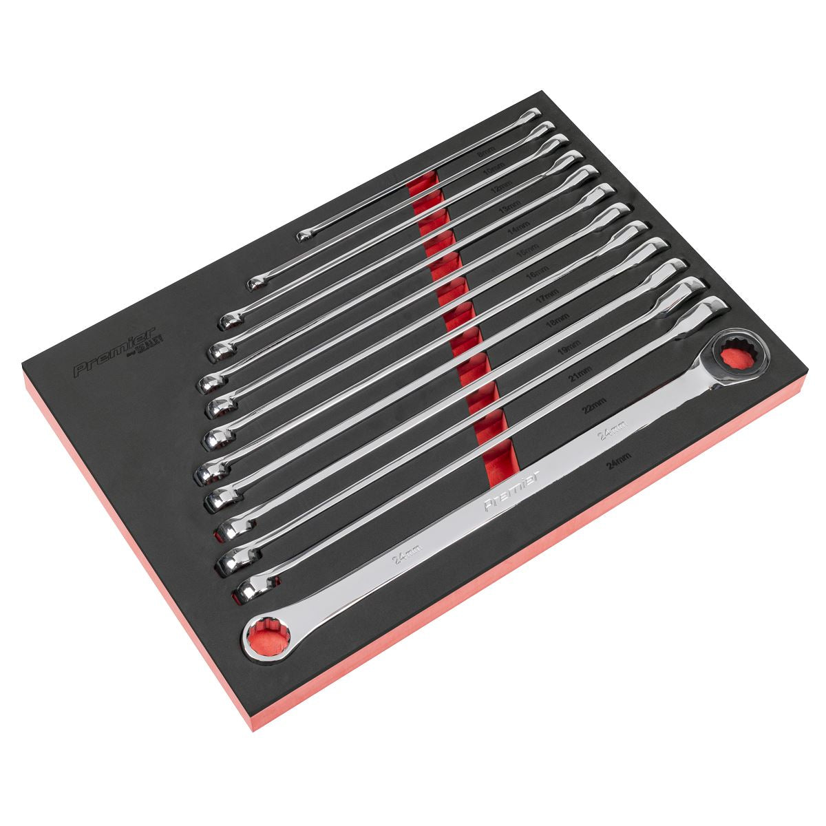 Sealey Premier Extra-Long Double Ring Ratchet/Fixed Spanner Set 13pc AK63190