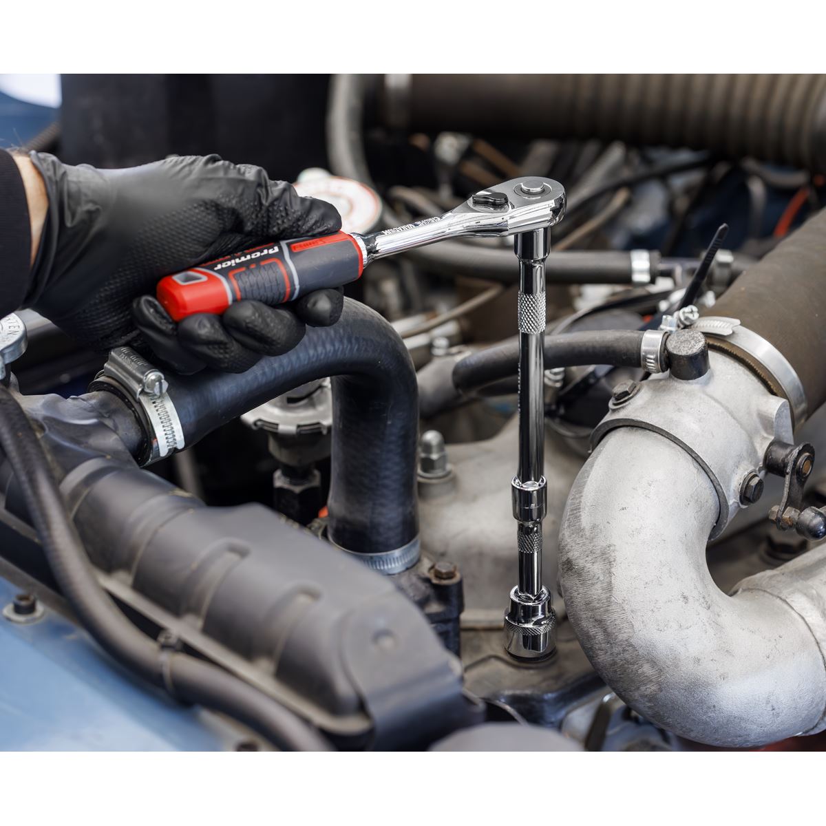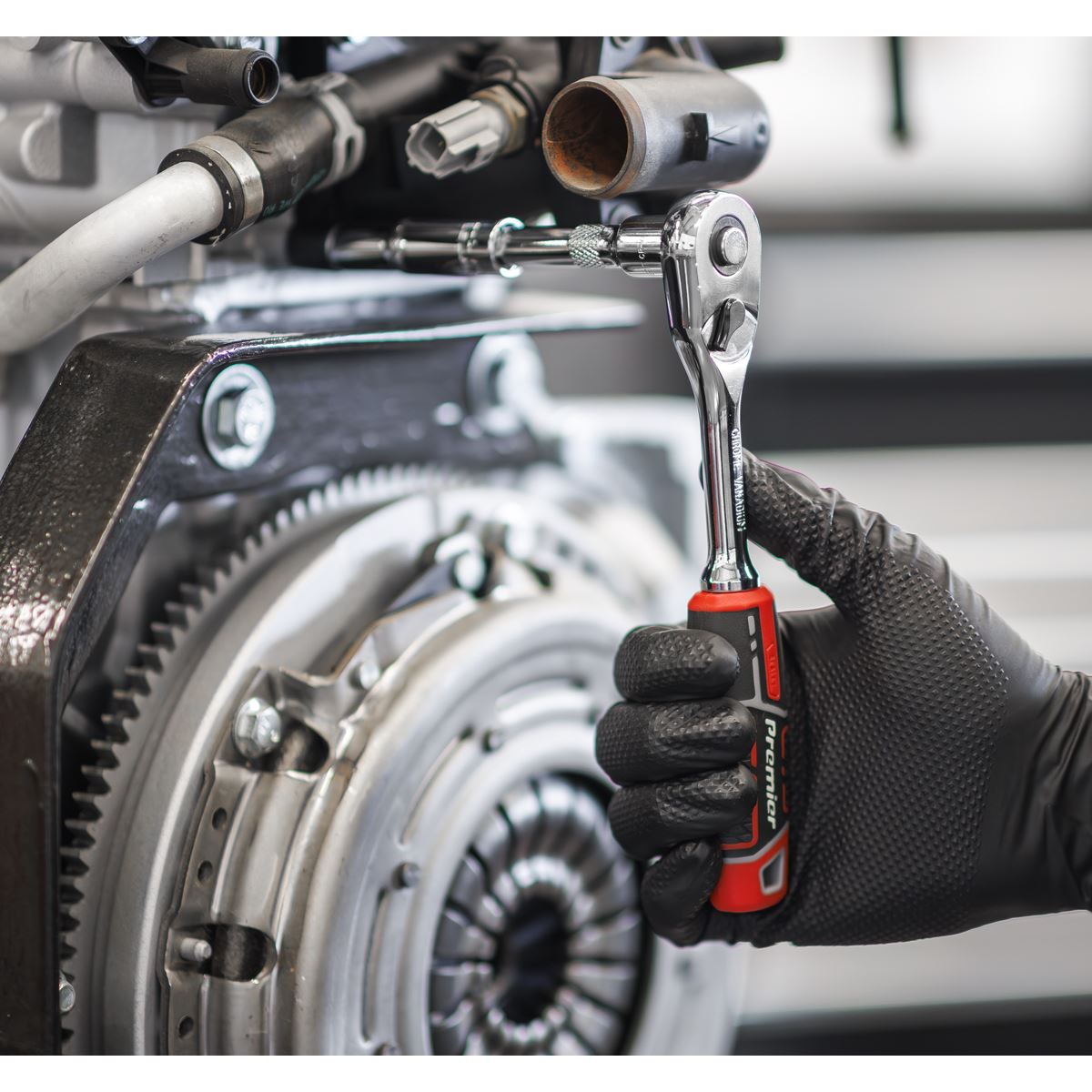 • Contents: Standard Sockets; 6, 7, 8, 9, 10, 11, 12, 13, 14, 15, 16, 17, 18, 19, 21, 22, 24mm, Deep Sockets; 10, 11, 12, 13, 14, 15, 16, 17, 18, 19mm, 90-Tooth Flip Reverse Ratchet Wrench, Extension Bars; 75, 150mm, Universal Joint, 1/2"(F) - 3/8"(M) Adaptor.