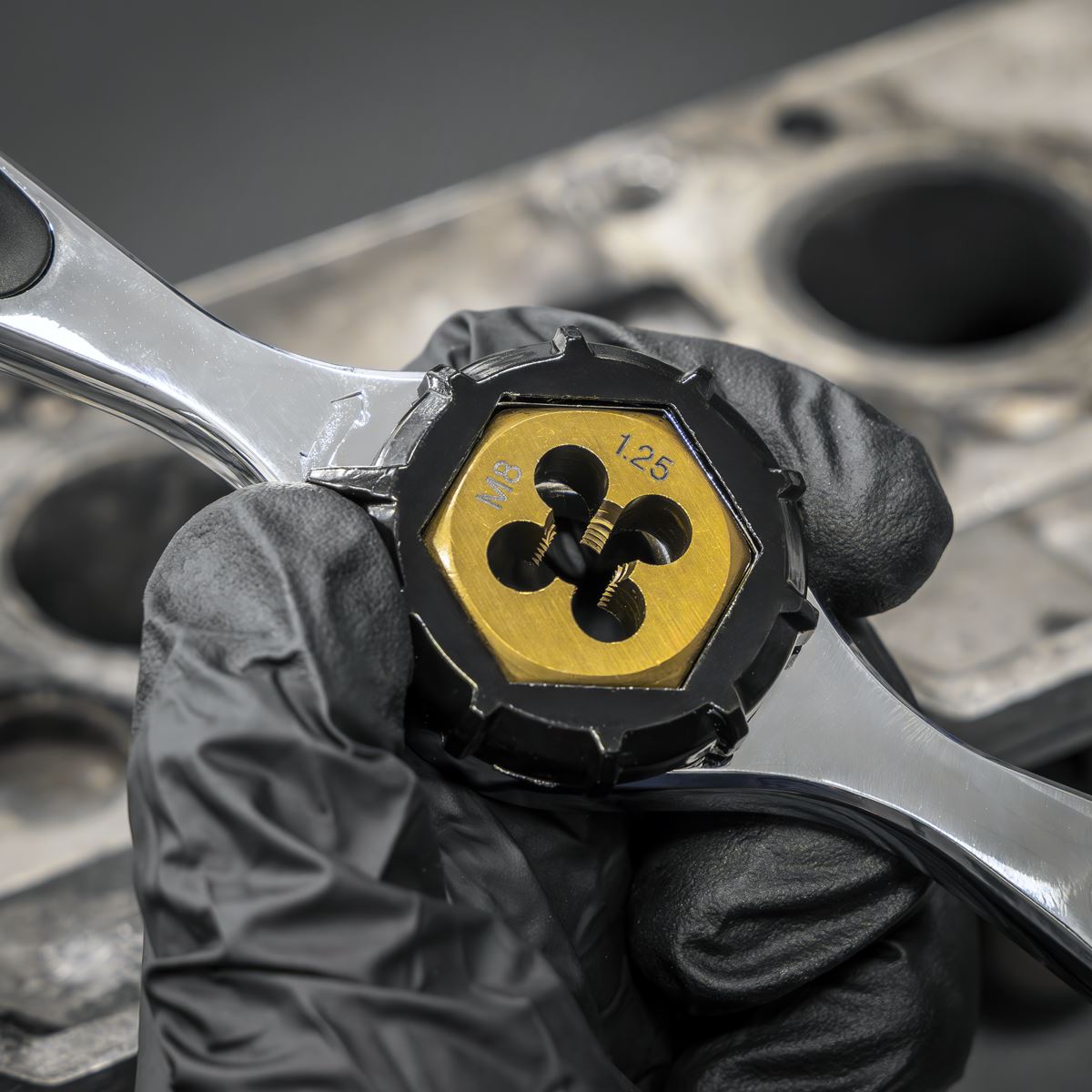 • Taps & Dies; M3 x 0.5, M4 x 0.7, M5 x 0.8, M6 x 1, M8 x 1, M8 x 1.25, M10 x 1, M10 x 1.25, M10 x 1.5, M12 x 1.25, M12 x 1.5, M12 x 1.75, T-Type Tap Wrench, Hex Die Handle.