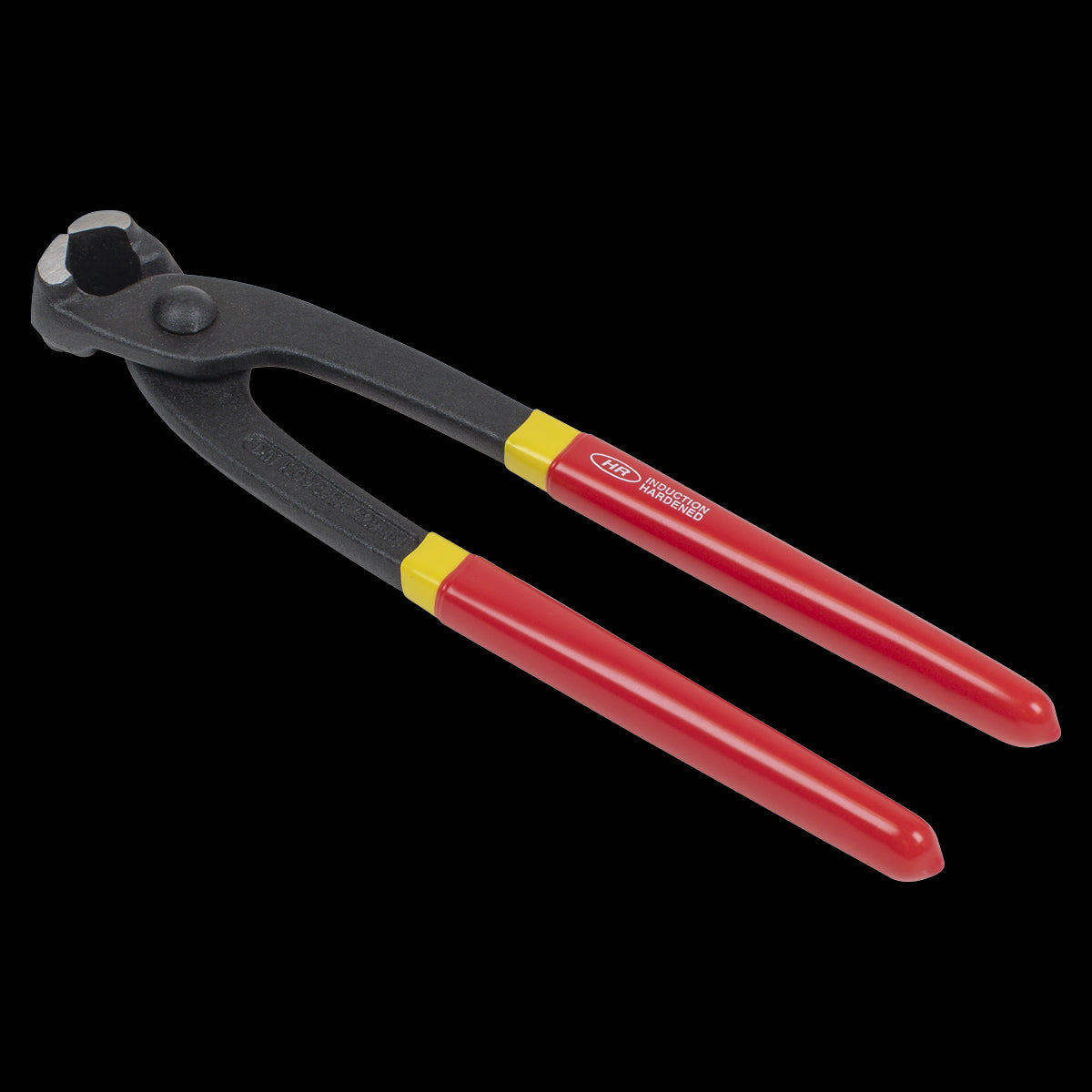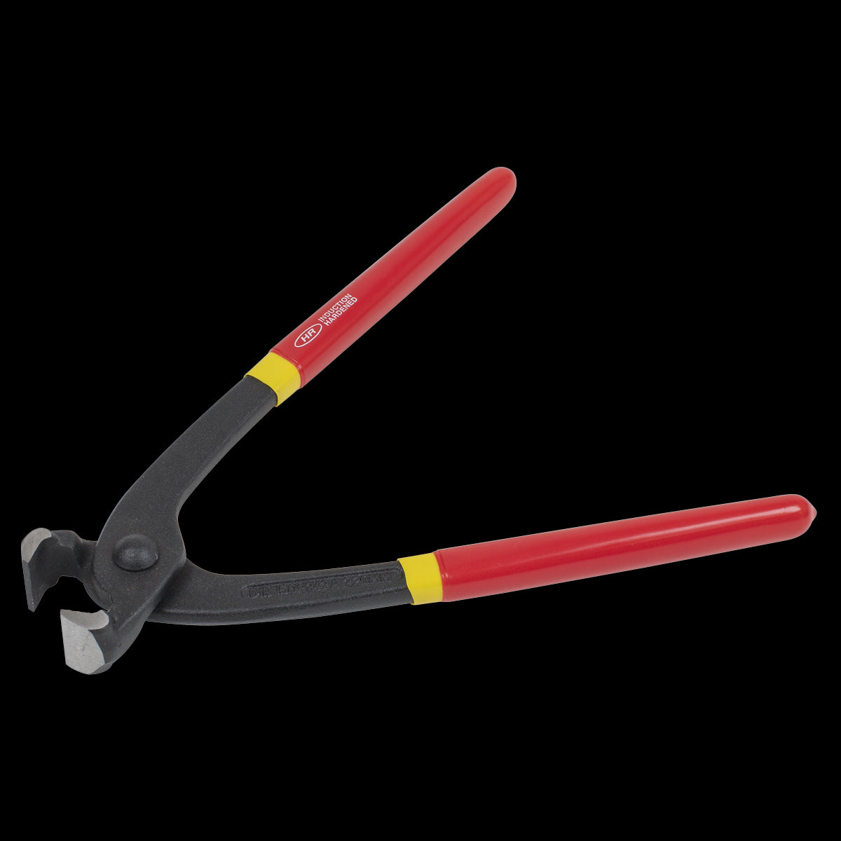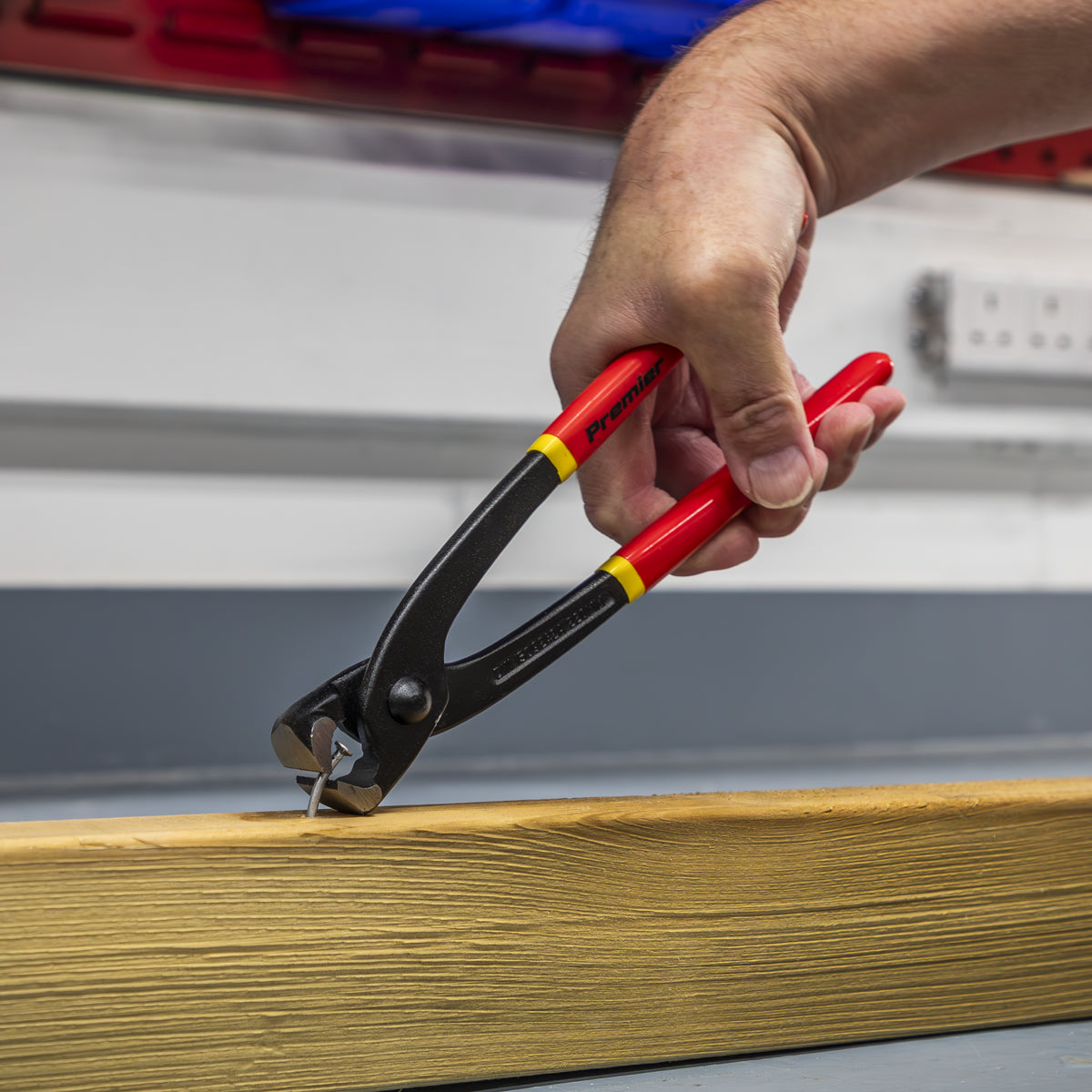 Drop forged high grade carbon steel tower pincers. Induction hardened cutting jaws for efficient holding, cutting and removal of nails and other embedded fixings. Gives the versatility of cutters and pincers in one, making jobs faster and easier. Long vinyl dipped handles for comfort and control.