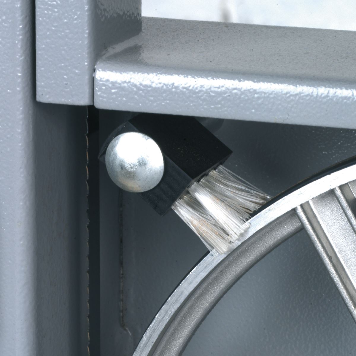 Fully approved to current CE directives. Steel chassis with locking blade wheel covers. Smooth operation by bearing-mounted blade wheels and belt drive induction motors. Micro switches prevent operation when either blade wheel cover is open. No-volt release switches prevent uncontrolled blade restart after power interruption. 2-Speed operation enables bandsaw to cut multiple types of materials. Fitted with tilting tables for cutting compound mitres. Fully adjustable blade tracking and tensioning for precise cutting action. Features quick adjusting rip fence, mitre gauge, dust extraction port, blade wheel brushes and push sticks. Supplied with metal stand.
