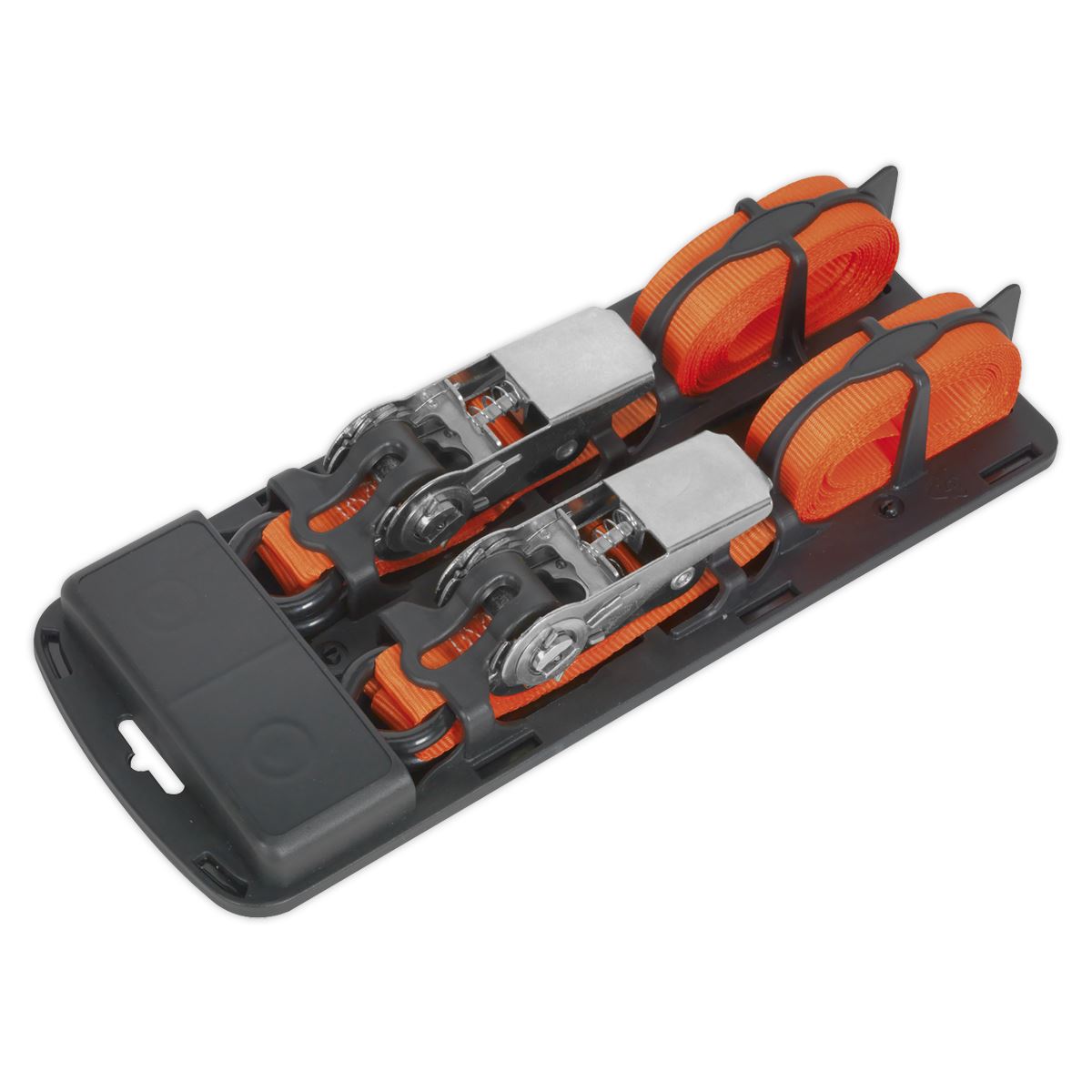 Sealey Ratchet Tie Down 25mm x 4m Poly Web 500kg Load Test - Pair TD0540S2