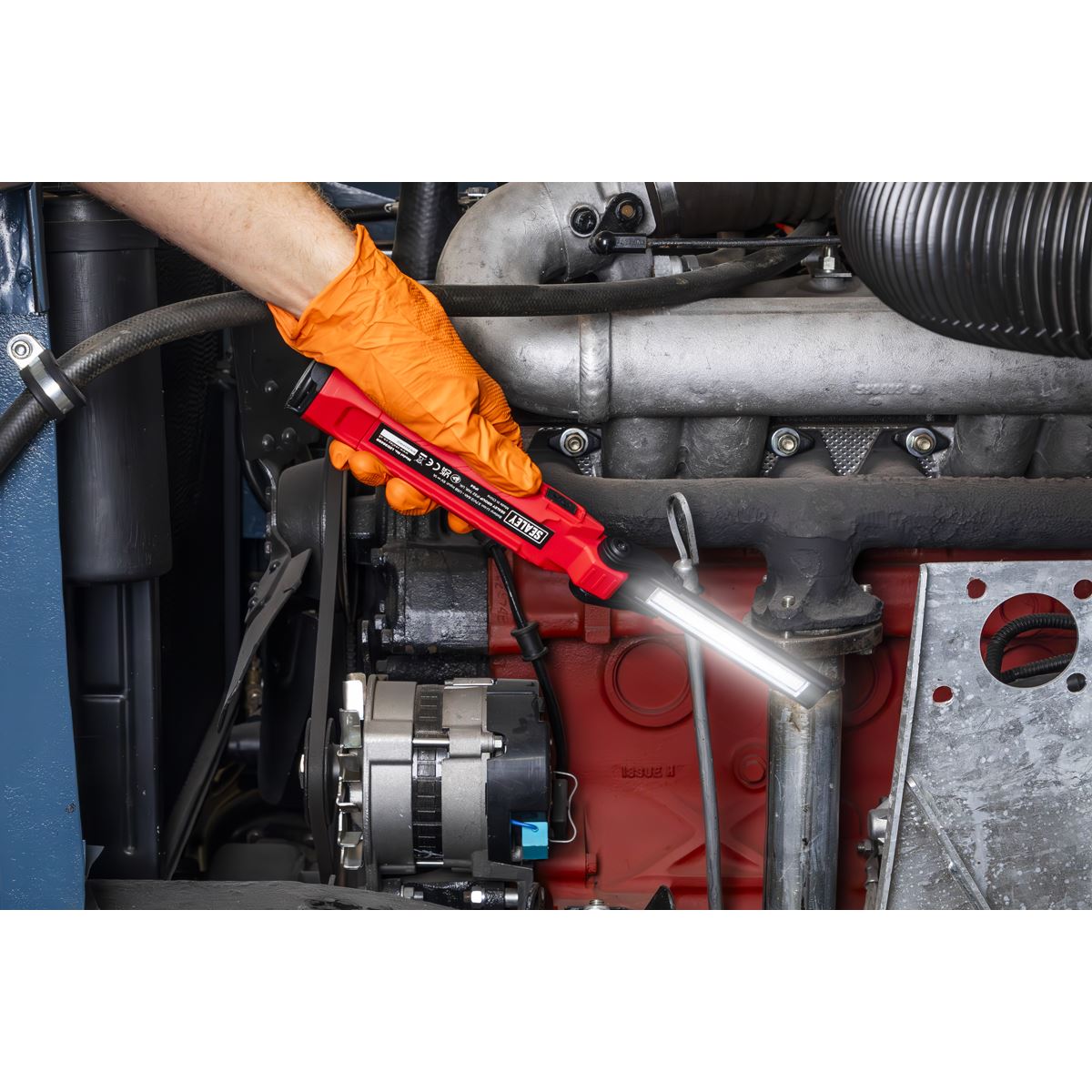 Unique and innovative 360� swivel and tilt function enables the light source to be positioned in any direction. Super bright 10W SMD LED light produces 1000 lumens and a smaller 4W SMD LED which produces 400 lumens. Includes an additional high power 4W LED directional torch. Features a swivel hook and rubber covered magnet which allow hands-free operation. Rechargeable high quality 3.7V 2600mAh Lithium-ion battery. LED charge indicator - flashes green for charging and continuous green for fully charged. Inspection arm can be folded 270�. High-impact IK07 Rated. Charges via a USB Type-C cable (supplied).