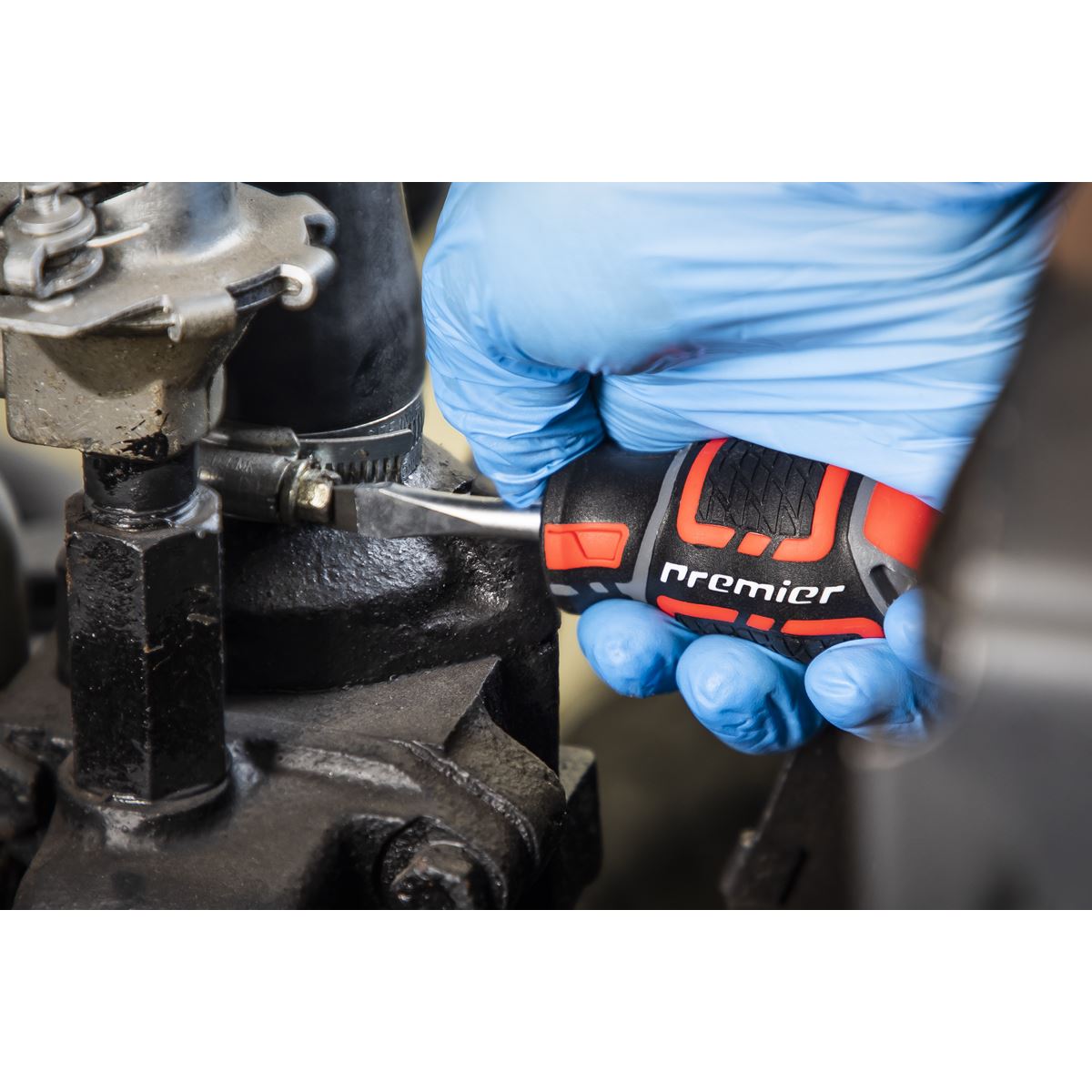 - High quality Chrome Vanadium satin finished shaft with shot blasted and magnetized tips. - Ergonomic polypropylene and TPV rubber soft grip handles maximize power transfer from hand to fixing. - Ideal for use in tight spaces. - Includes hanging holes for alternative storage. - Contents: Slotted; 6 x 38mm, Phillips; #2 x 38mm, Pozi; #2 x 38mm. - Lifetime guarantee*. - Model No. AK4328- One of a comprehensive range of Premier Hand Tools, suitable for daily professional use. - High quality Chrome Vanadium satin finished shaft with shot blasted and magnetized tips. - Ergonomic polypropylene and TPV rubber soft grip handles maximize power transfer from hand to fixing. - Ideal for use in tight spaces. - Includes hanging holes for alternative storage. - Lifetime guarantee*.
