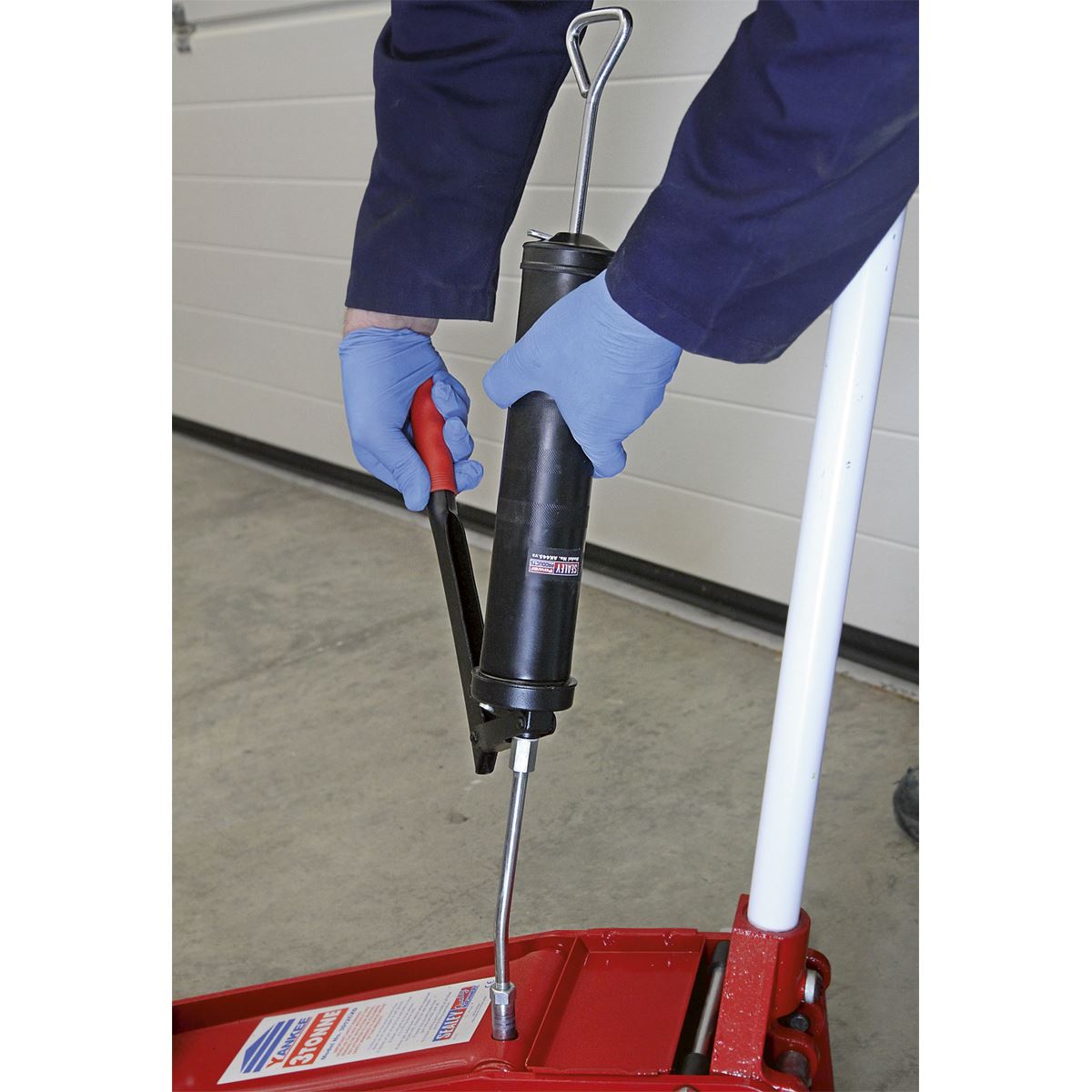 - 3-Way fill with cartridge, bulk or manual capability. - Supplied with rigid delivery tube and push-on hydraulic 4-jaw coupling. - Contoured pump handle. - Accepts standard 400g cartridges. - Optional 300mm Flexible Delivery Tube - order Model No. GGH300. - Model No. AK445- 3-Way fill with cartridge, bulk or manual capability. - Supplied with rigid delivery tube and push-on hydraulic 4-jaw coupling. - Contoured pump handle. - Accepts standard 400g cartridges.