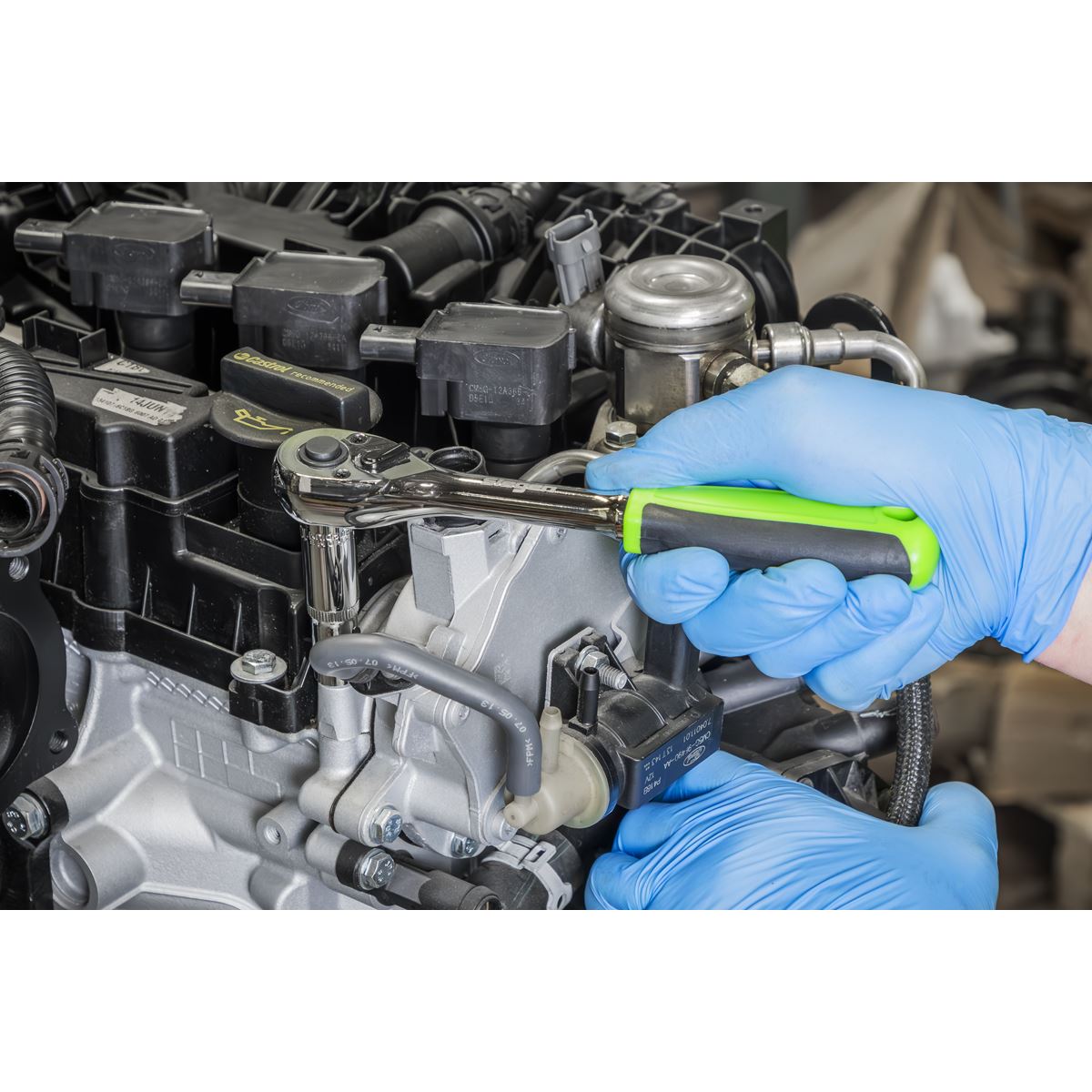 • 62-Piece 3/8"Sq Drive socket set, 72-Tooth ratchet and accessories.