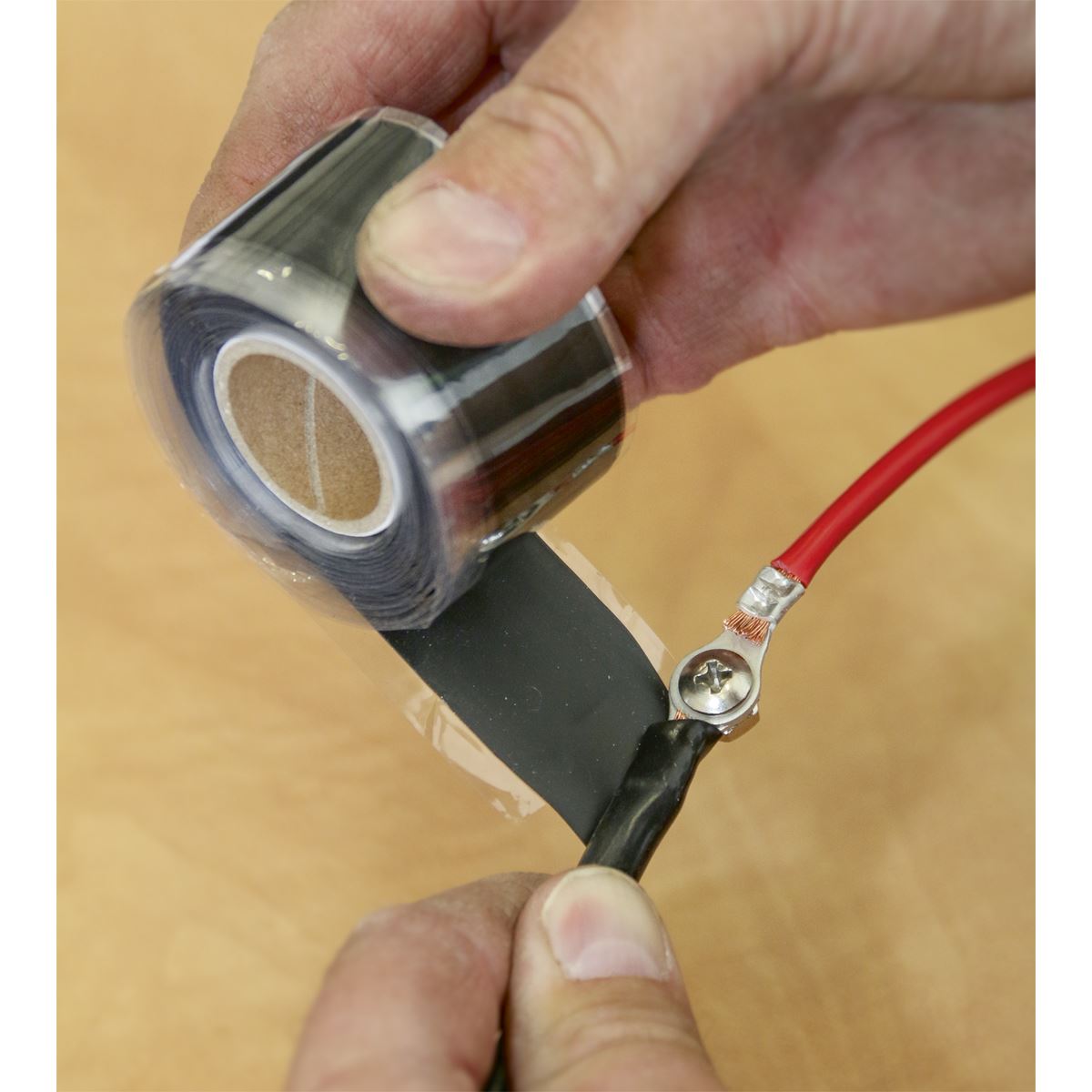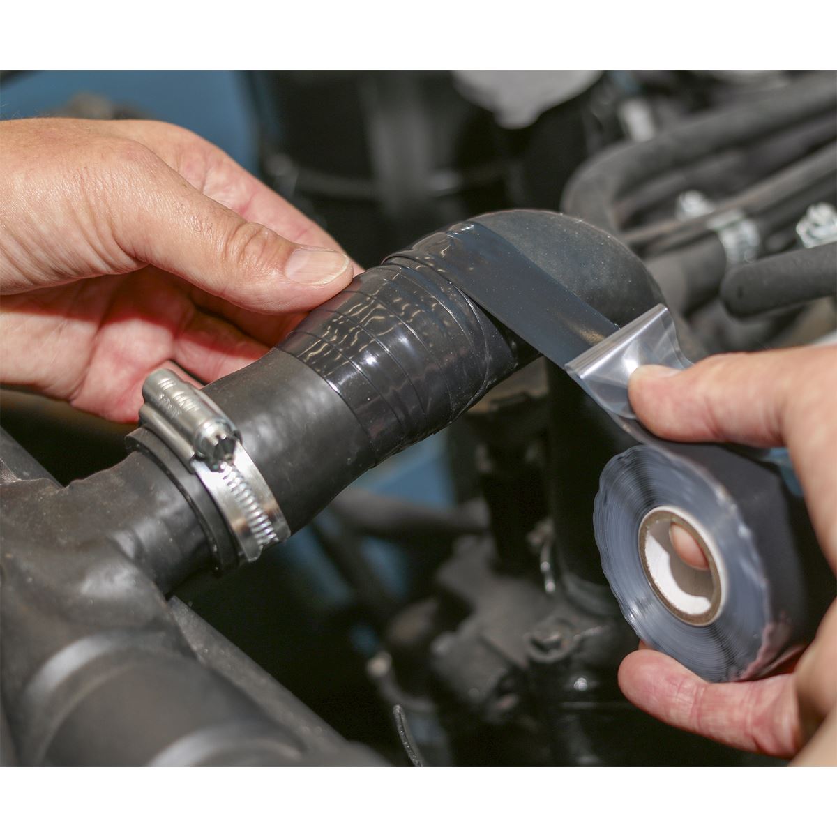 Silicone repair tape used for covering electrical repairs to help create a moisture barrier. Can also be used as a temporary fix on household water pipes and car radiator pipes. Self-fusing and remains flexible. Not be used with Petrol, Diesel or Brake Fluid.