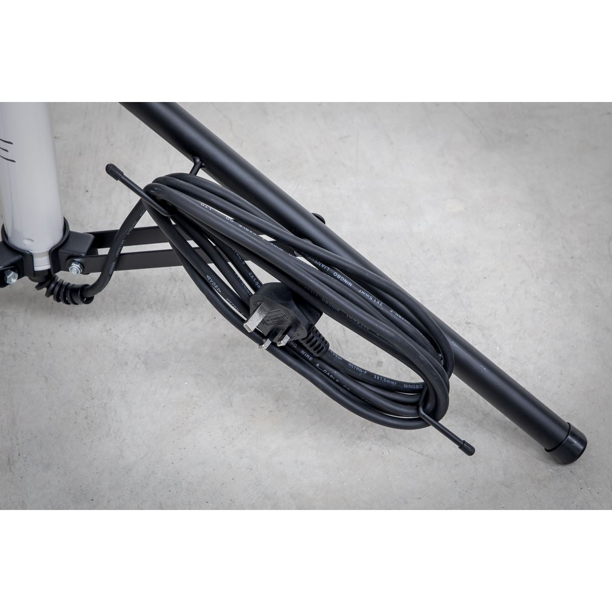 360� Slim standing floodlight to illuminate the whole area whilst working. SMD LED 60W producing 6600 lumens. Foldable tripod stand for easy storage. Includes 230V 3-pin plug and 3m cable.