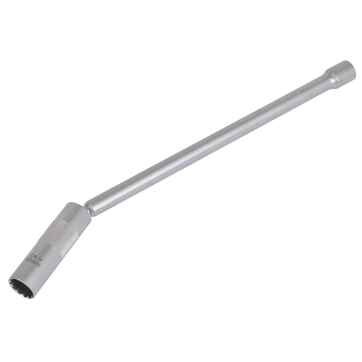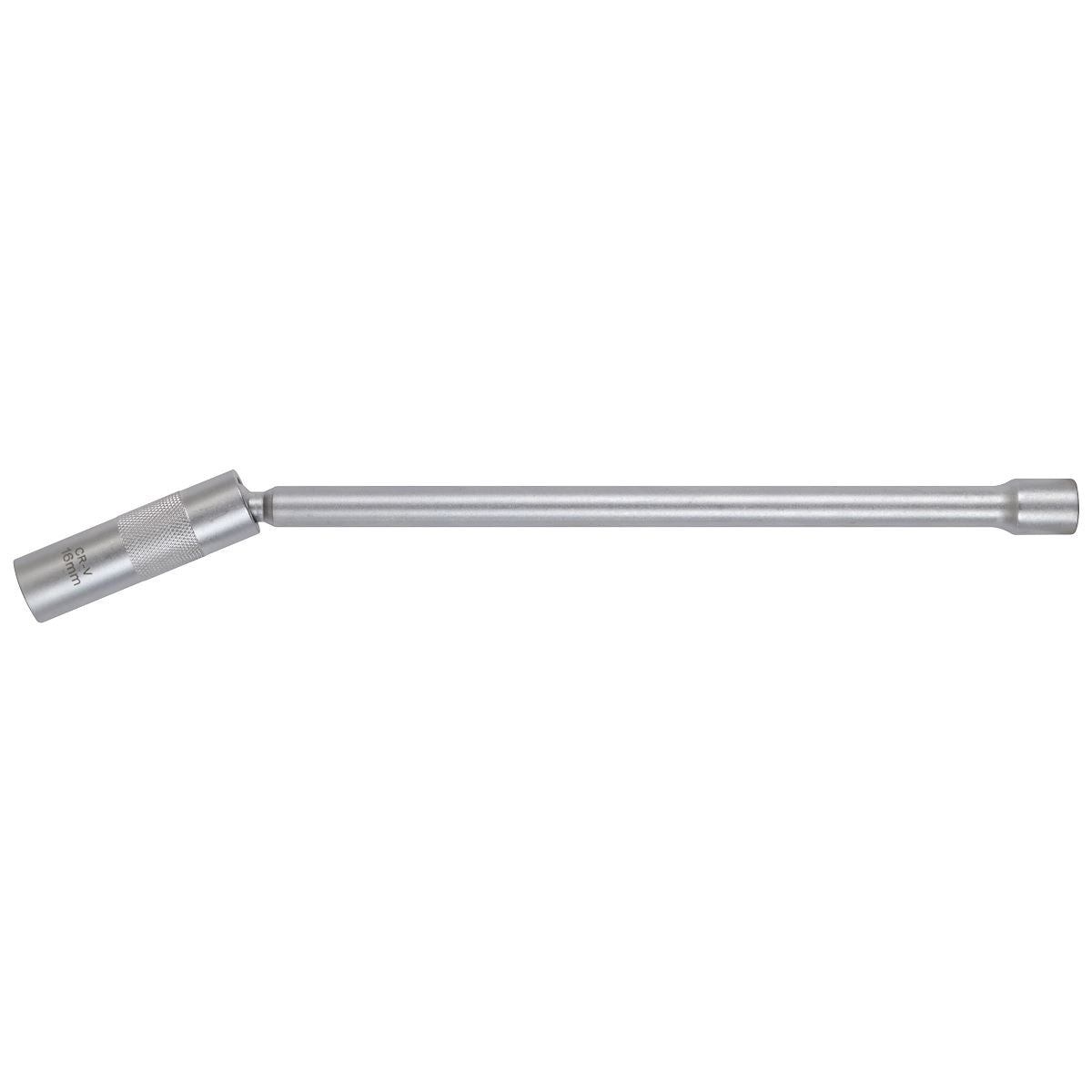 Manufactured from hardened and heat-treated Chrome Vanadium Steel for strength and durability. Includes internal magnet for retention of spark plug during installation or removal. Extension bar and thin wall design ideal for use in applications with limited access. Universal joint with 360� rotating head, allows for increased access at difficult angles. 12-Point standard depth socket. Knurled design for secure grip. Length 310mm.