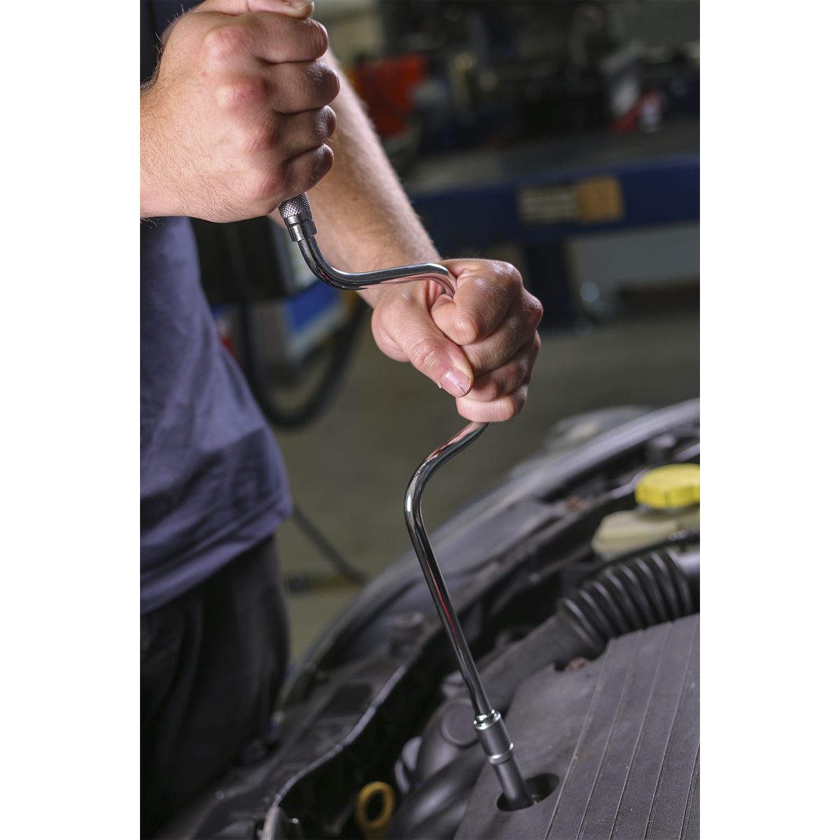 Drop-forged, Chrome Vanadium steel speed brace. Hardened and tempered with a chrome plated, fully polished mirror finish. 360 Handle with deep knurling allows extra grip when spinning off fixings.