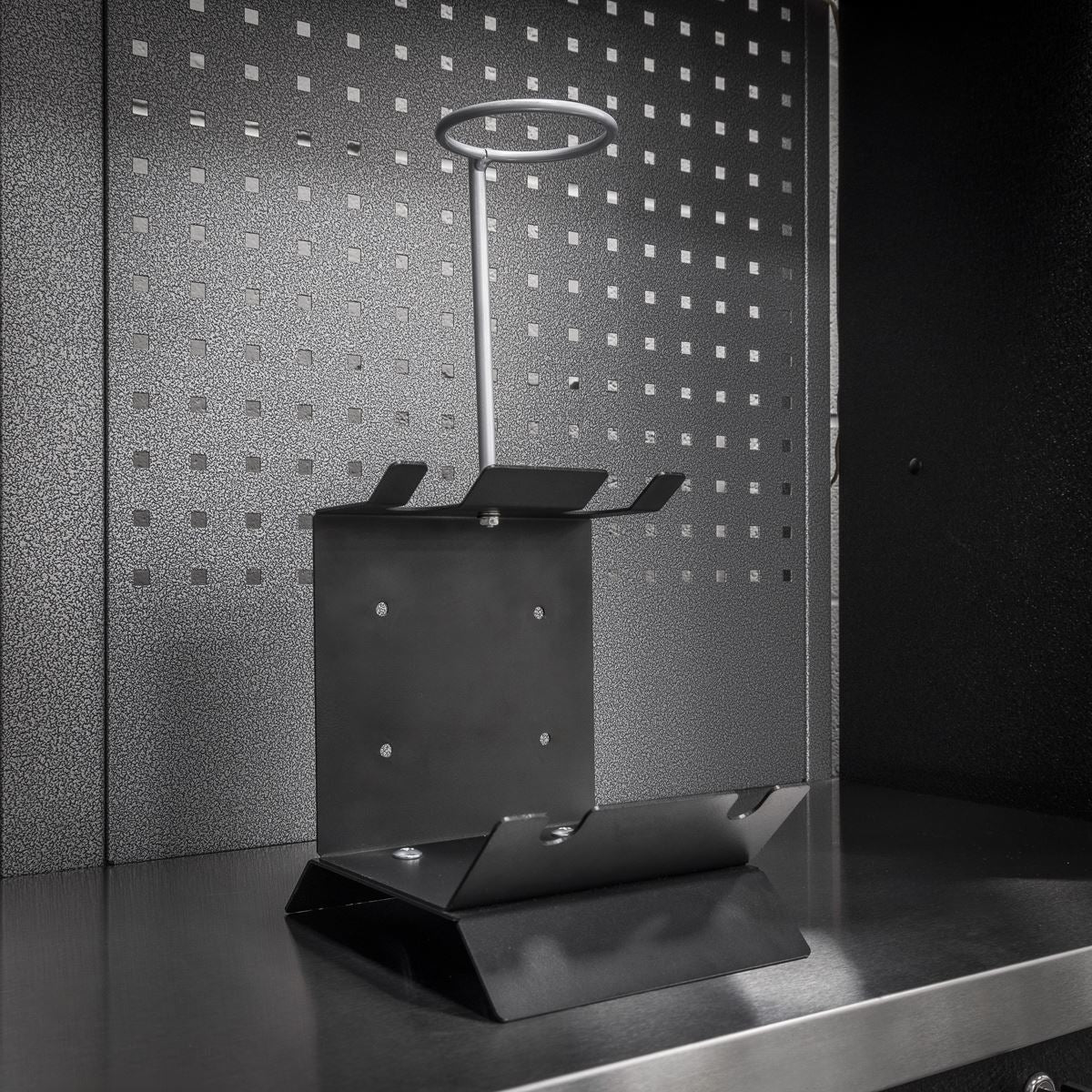 • Bench or wall-mounting design with adjustable filter holder ring provides flexible options for setting up your spray gun holder in any workspace.