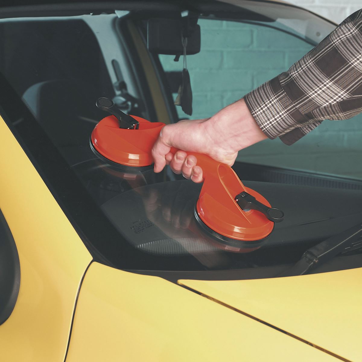 - Two 120mm rubber suction grips prevent damage to surface. - Designed for handling material such as glass, tiles, plastic, sheet metal and other non-porous materials. - Push-lock levers for easy operation. - Will hold up to 40kg in horizontal position. - Model No. AK9892- Two 120mm rubber suction grips prevent damage to surface. - Designed for handling material such as glass, tiles, plastic, sheet metal and other non-porous material. - Push-lock levers for easy operation. - Holds up to 40kg in horizontal position.