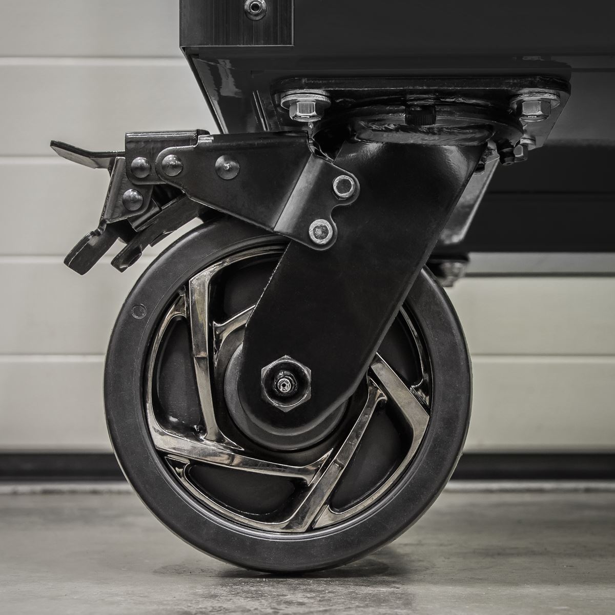 1864mm side locker with four self-adjusting powder coated shelves. Use as part of a complete garage storage system. All heavy-duty steel construction and manufactured with steel inner walls for extra strength and durability. Textured industrial powder coated finish. Fitted with two 152mm PP wheels with black chrome effect alloys and quick release anti-rotation toe locks. Only for use with Sealey AP6215BE 1549mm Mobile Trolley and AP6203BE Hutch and 2 drawer riser unit. Supplied with two folding keys. Extra assistance must be provided at the delivery point to help its safe arrival, delivered on a wooden pallet.