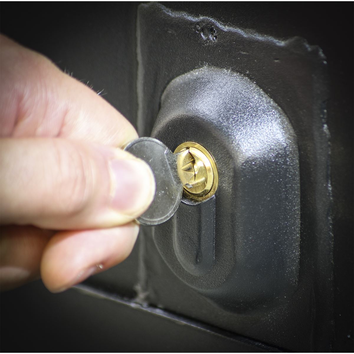 Welded steel construction with folded lips for added strength and rigidity. The tool vault features recessed heavy-duty handles on the sides and front to aid manoeuvrability. Lid is supported by two gas struts to enable smooth opening and to hold open when required. The vault also features welded feet which allow the user to move with either a forklift, pallet truck, or to attach Model No. STVWK (optional castor wheel kit). An additional storage shelf inside the unit is ideal for having tools in clear view and at arms length, ready for the job in hand. For added security the vault features anti-jemmy seams on the inside and outside. Suitable for secure storage of tools and heavy equipment, on site, in-vehicle, in the workshop or at home. Supplied with two keyed alike locks and six keys.