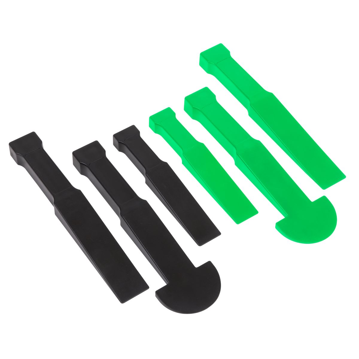 Multiple uses can be used as a scraper for removing decals and can also be used to pry open delicate materials. Non-marring trim set that can be used to dismantle and install dashboards, vents, door panels, door locks, and audio and electronic installations without causing damage to paintwork. Colour-coded, green tools are used for car interior trims, and black tools are for car exterior trims. Ergonomically designed, lightweight and easy to hold.