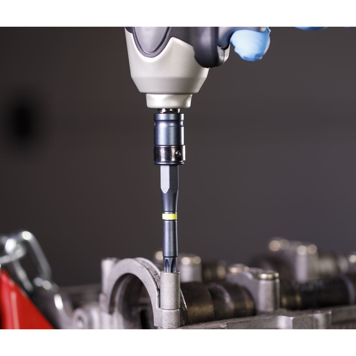 High quality impact grade S2 steel satin finish 36mm(L) bits. Specially heat treated CNC machined tips reduce stress and prevent cam-out under load. Torsion bits absorb impact and transfer maximum torque to the fixing. Hardened (58-62 HRC) and tempered for added strength. Colour-coded for fast identification. Supplied in storage case.