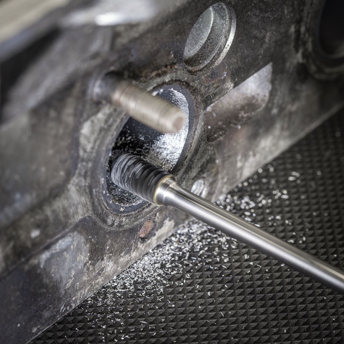 10mm Burr made from Tungsten Carbide. Extra-long 120mm rotary burr. Ball nose No. 6 cut (universal). For use on soft and hard metals, including welded seams. Supplied in a plastic storage box.