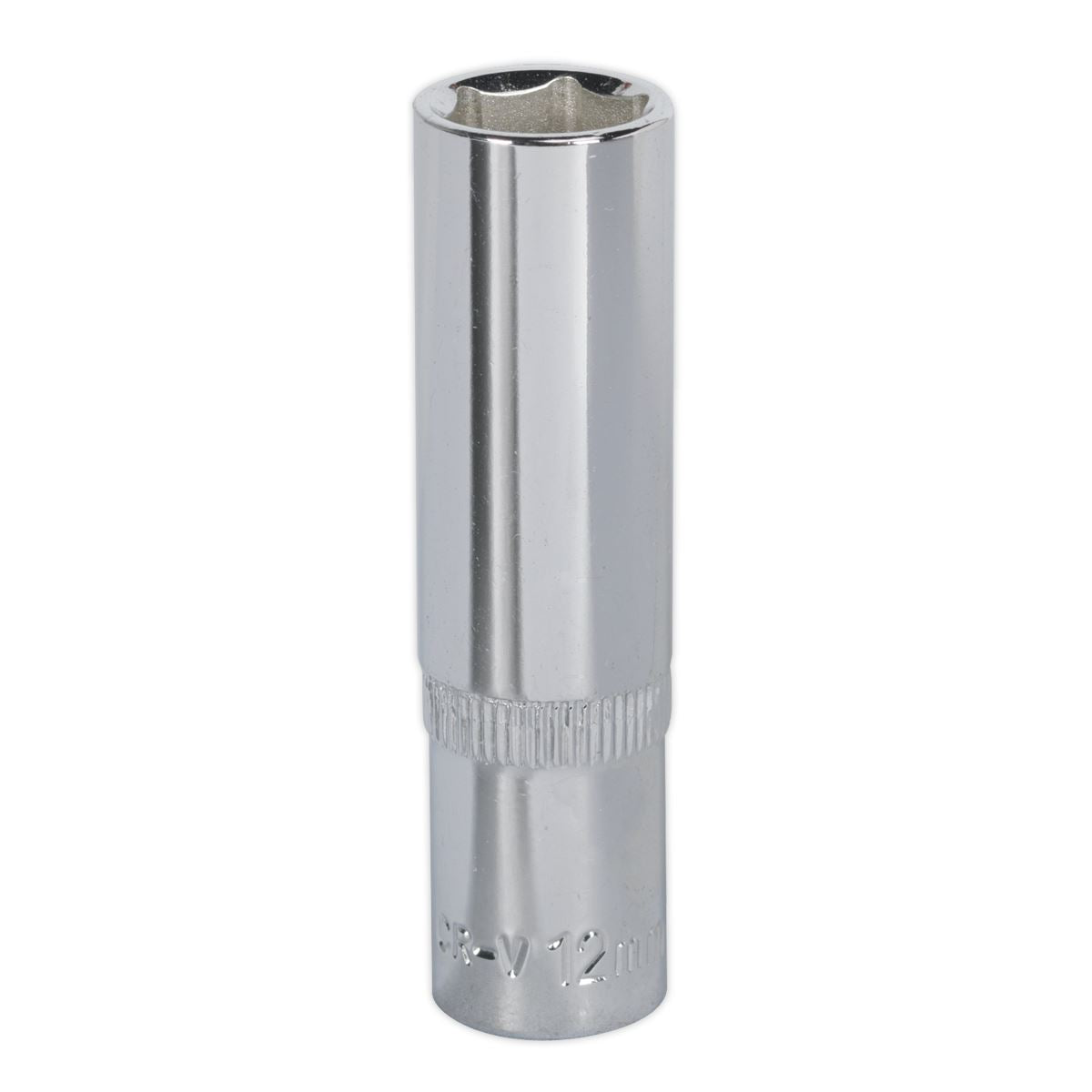 Sealey WallDrive Socket 12mm Deep 3/8"Sq Drive Fully Polished SP3812D