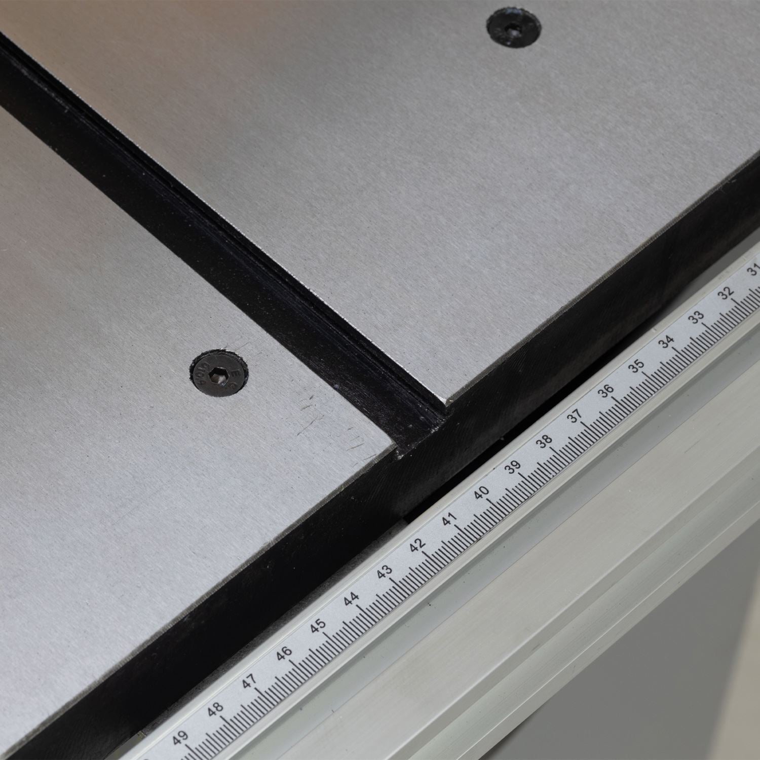 - Heavy-duty rip fence with mm scale adds guidance and consistency