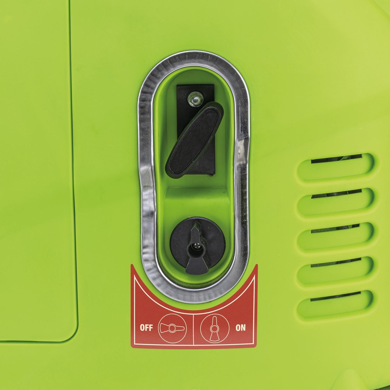This petrol-powered generator features an integrated economy control switch for low loads and increased fuel efficiency.