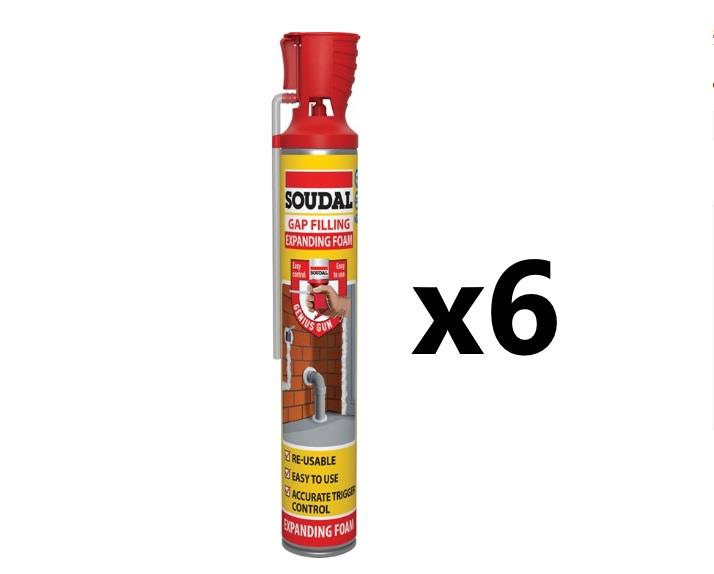 Soudal 6x DIY Gap Filling Foam Genius Gun - CHAMPAGNE (500ml) NONEU Tracked - 702378