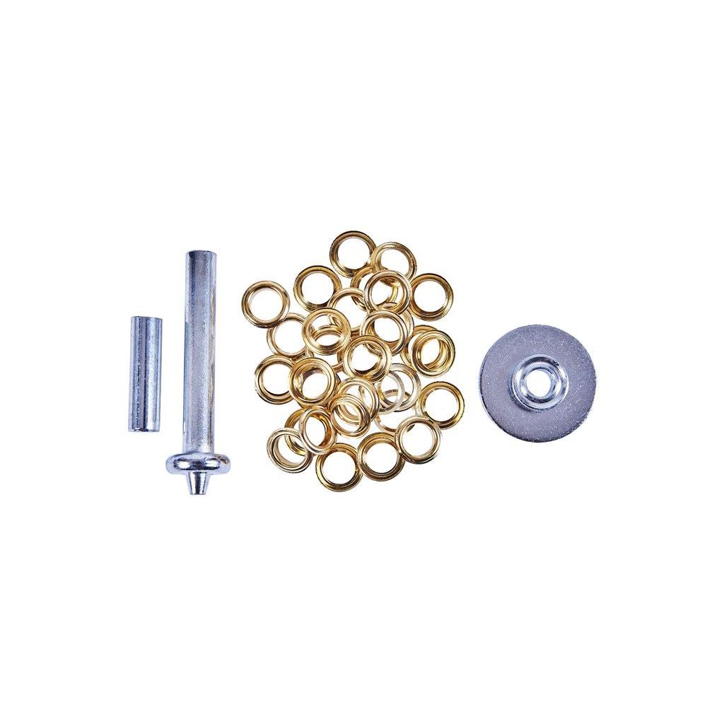 Set includes 3pcs drop forged zinc grommet punches, 30pcs 1/2" rust proof brass coated grommets, 30pcs 1/2" rust proof brass coated washers. For quick and easy repair of tarpaulins.