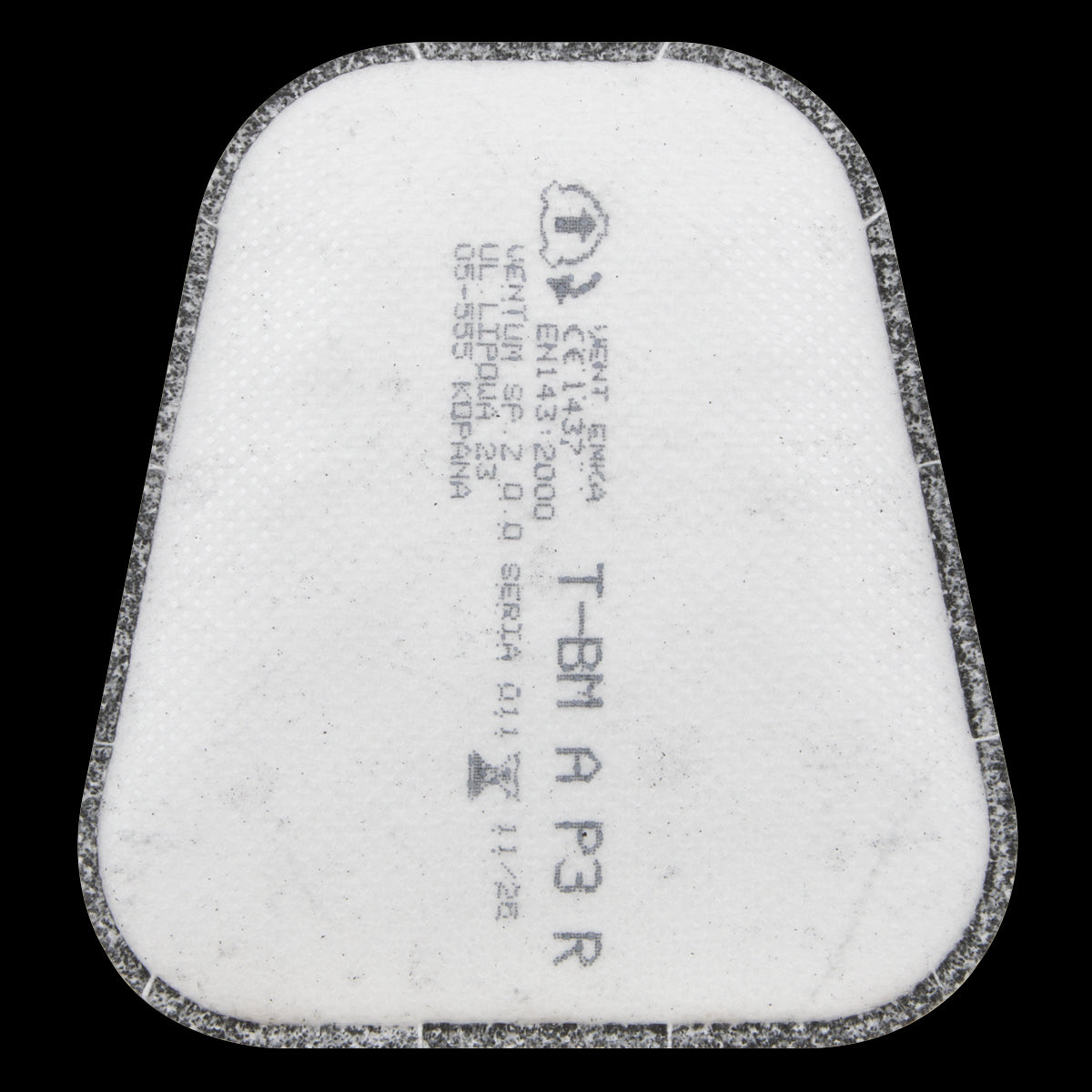 • A P3R Particulate filter provides protection against solid particles and water based aerosols.